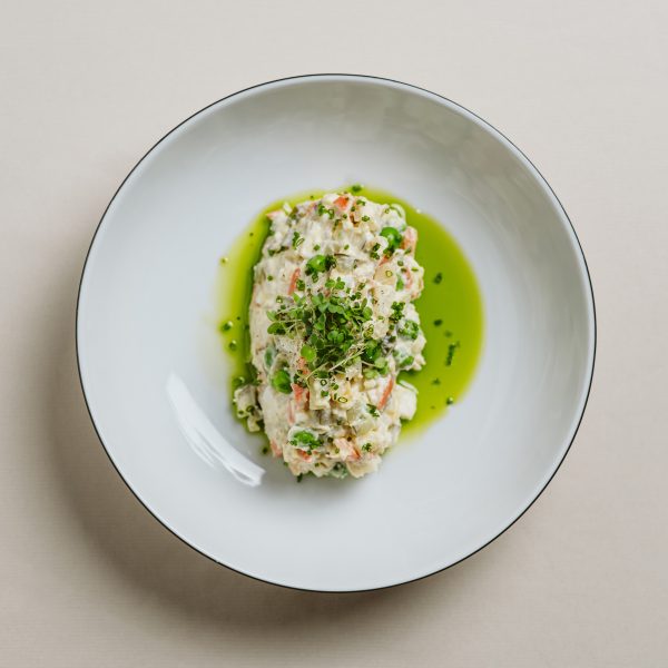 Sałatka jarzynowa z pieczonymi czerwonymi ziemniakami i domowym majonezem szczypiorkowym