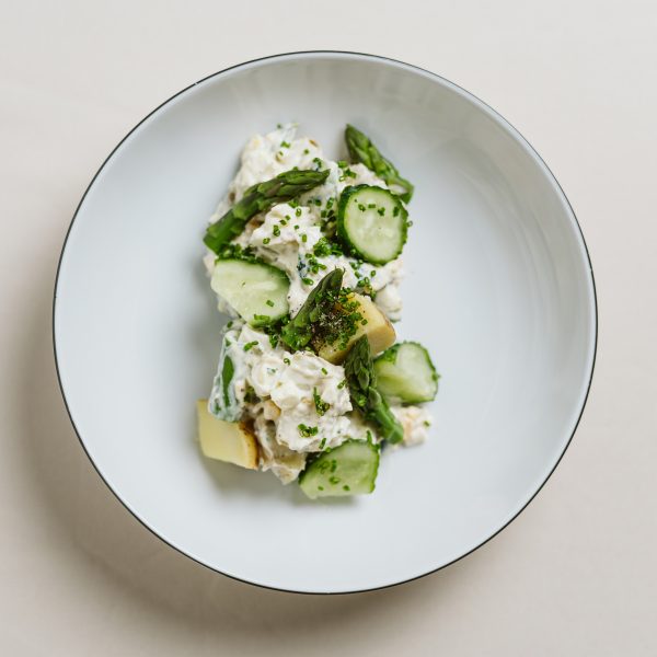 Sałatka ziemniaczana z ogórkiem małosolnym i szparagami