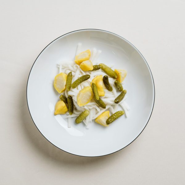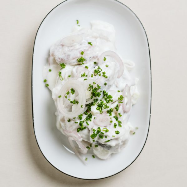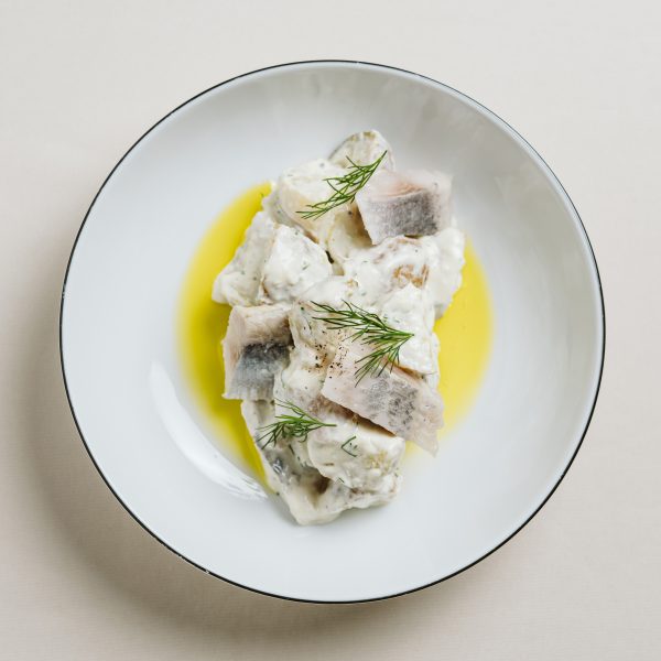 Sałatka z matjasem, chrzanem śmietankowym i piklami w musztardzie