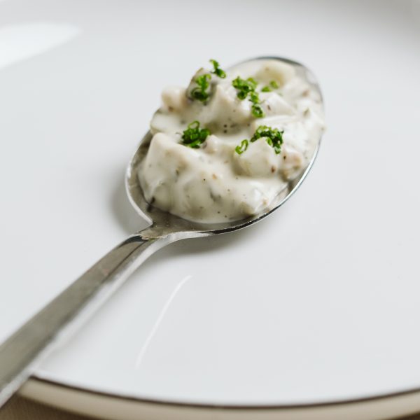 Podane w rękawie cukierniczym do precyzyjnego serwowania.