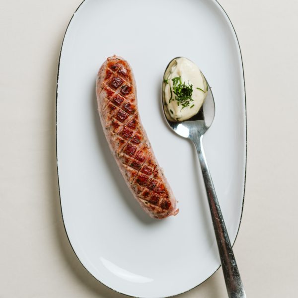 Konfitowana biała kiełbasa z czosnkiem i majerankiem