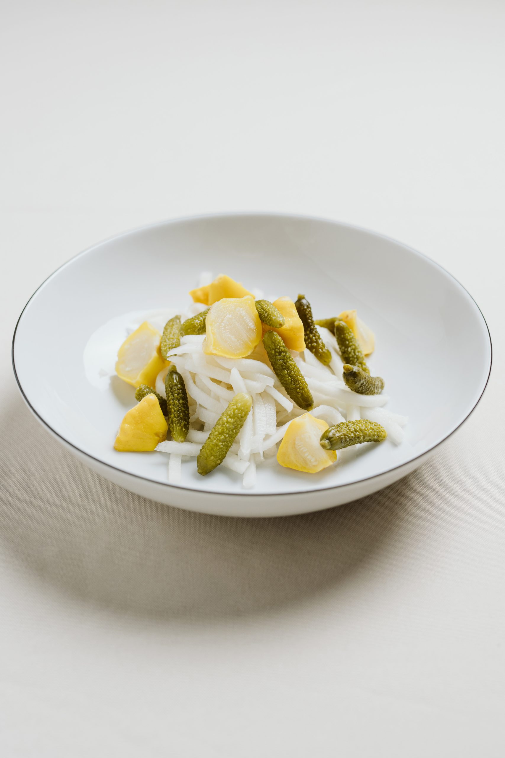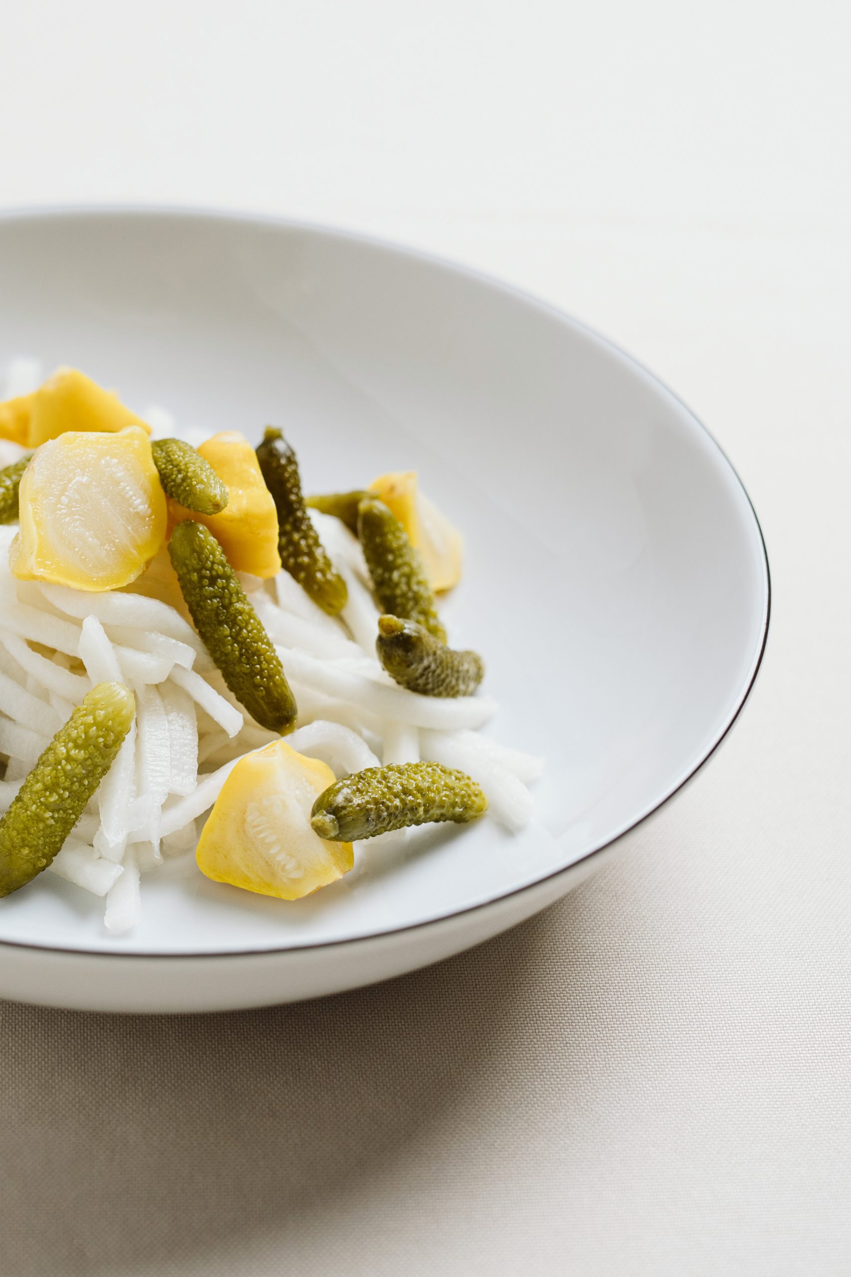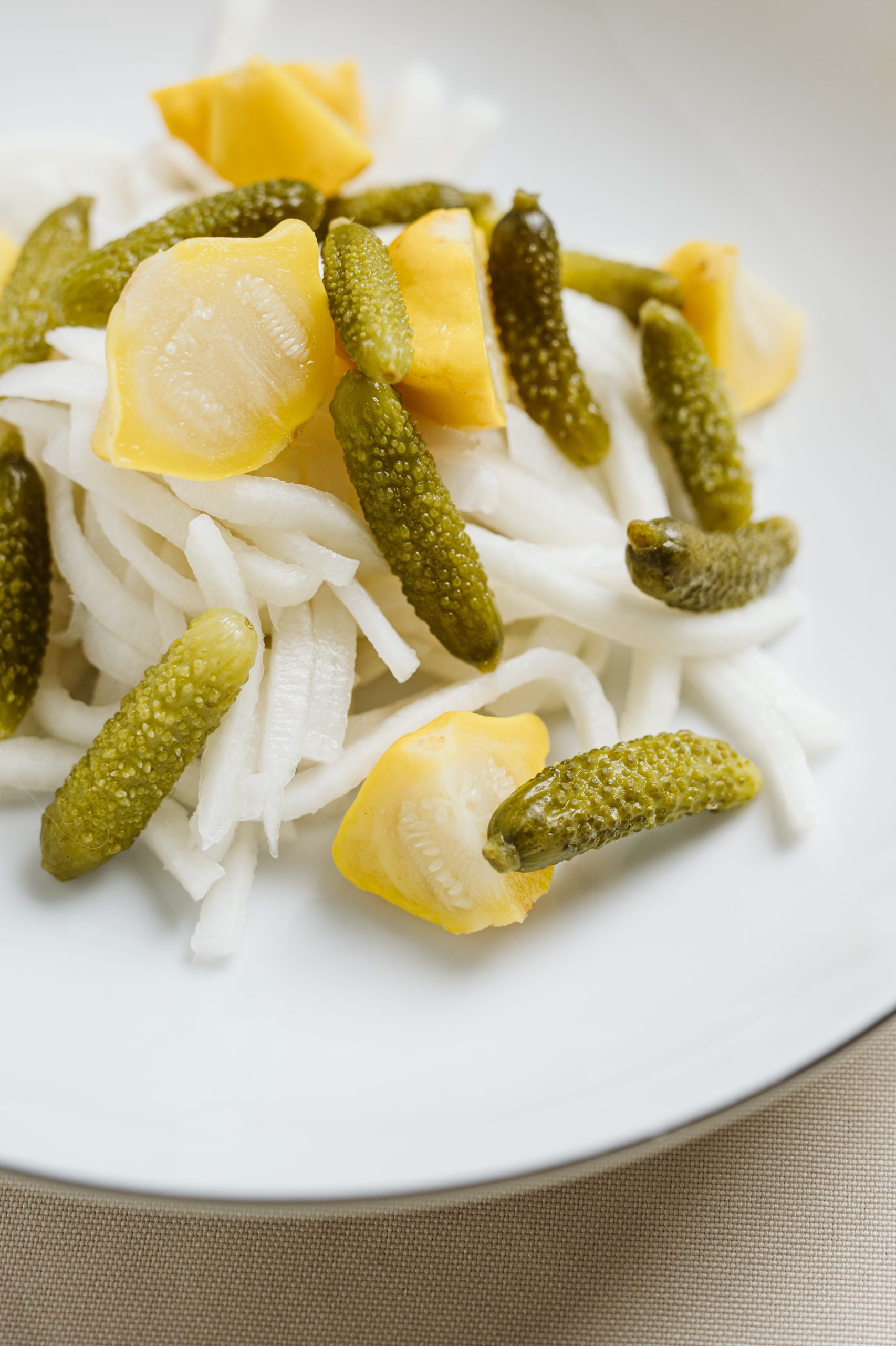 Chrupiące, słodko-kwaśne i lekko pikantne. W słoiku znajdziesz kalarepę, korniszony i patisony, marynowane w aromatycznej zalewie z octu jabłkowego, cytryny, limonki i przypraw korzennych. Nuty chili, anyżu, goździków i cynamonu nadają im wyjątkowy, świąteczny charakter. Idealne jako dodatek do mięs i serów.